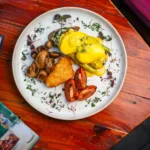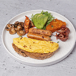 Choice of chicken or beef sausage, choice of egg, grilled bacon, avocado, grilled mushrooms, hashbrown, balsamic roasted tomatoes and your choice of tea or coffee.