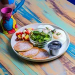 Seasonal cuts of fruit, fried eggs, roasted baby potatoes with pesto, your choice of French toast or pancake, toasted multigrain bread, maple syrup and your choice of coffee or tea.