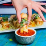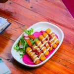 Crispy golden brown spring rolls. Served with rocket salad and sweet chilli sauce.