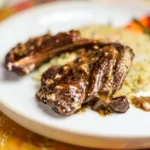 Grilled lamb chops served with quinoa pilaf, crumbled feta and a rich lamb and onion jus.