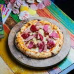 Savoury beef pepperoni, paired with homemade tomato sauce, melted mozzarella and oregano, creating a rich and flavour-packed pizza experience.