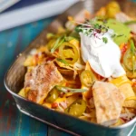 Cajun chicken, crispy tortilla, jalapeño, tomato salsa, warm cheddar cheese, mozzarella, sour cream, guacamole and a sprinkle of spring onion.