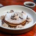 Two pieces of Rocher-stuffed pancake, served with maple syrup or honey.