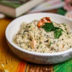 Creamy truffle mushroom risotto made with arborio rice, parmesan cheese, fresh parsley, earthy mushrooms, and a velvety cream sauce.