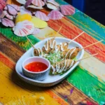 Crispy tempura prawns tossed in dynamite sauce, with deep-fried rice vermicelli and sesame seeds.